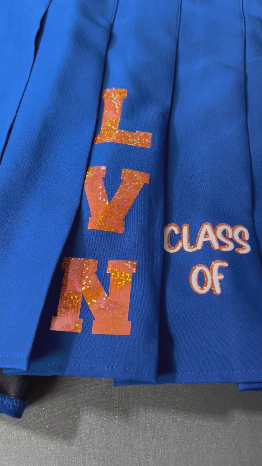 Senior Outfit. Top and bottom included. The basic information will be included. On the Sweatshirts there will be the Senior and year. On the skirt, there will be class of, year, school initials, and senior. Things I'll need to know is the color and sizes of your top and bottom and colors you'd like the letters to be. This information should be included in the notes There is an extra charge for glitter. If you'd like the name added to the skirt also add it in the notes. This is not just for seniors. This item does take 10-12 business days.